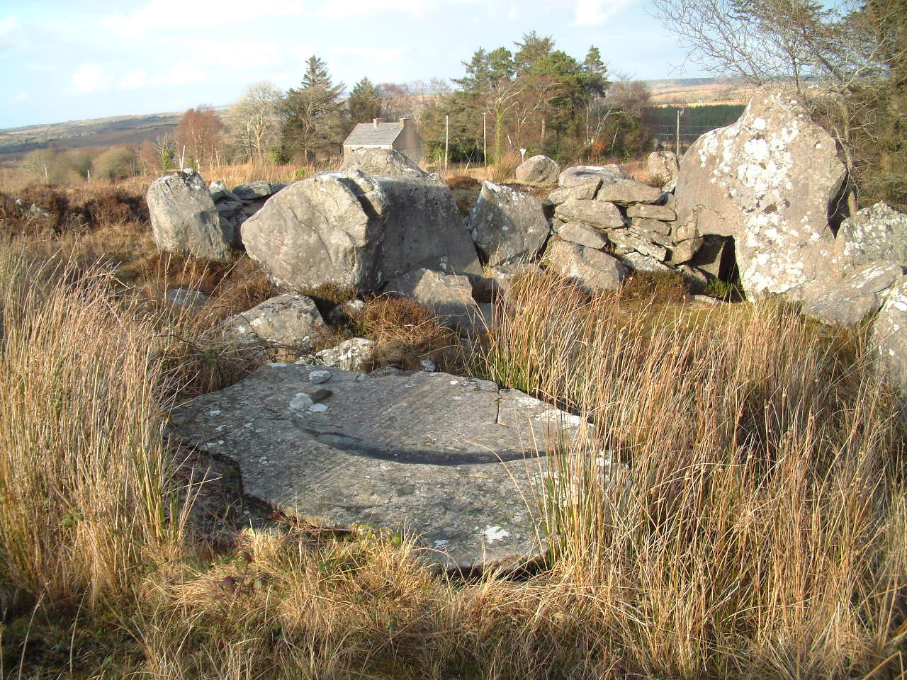 Description: A large Court Chamber with a box feature and the tomb on the south side of the box structure. Likly to have been covered with a stone cairn.