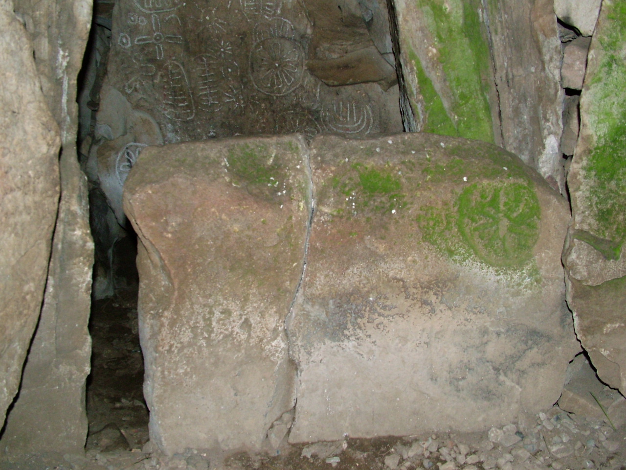smaller sites, which also include decorated stones. Since these photos where taken, one of the main lintel slabs at the entrance way has cracked and is being supported with a building jack.