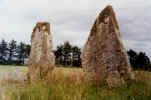 Description: A site with two large stones in a row with a few smaller stones laying around. It may be a part of a larger site or a stone alignment.